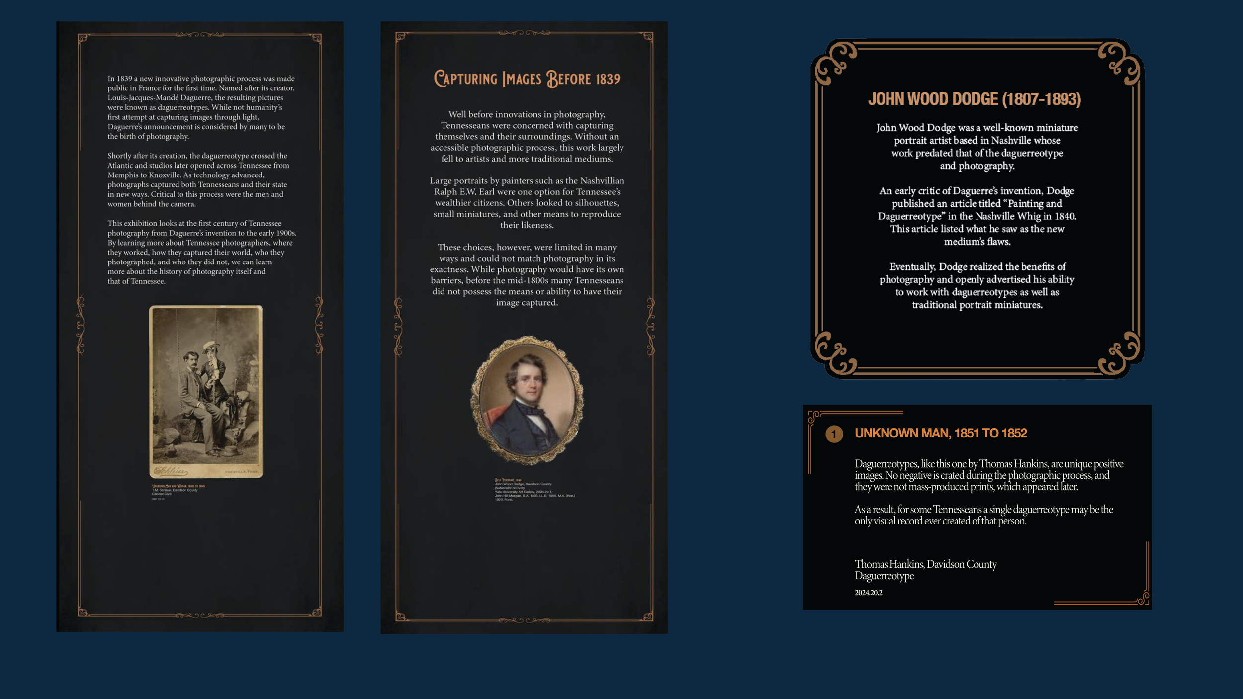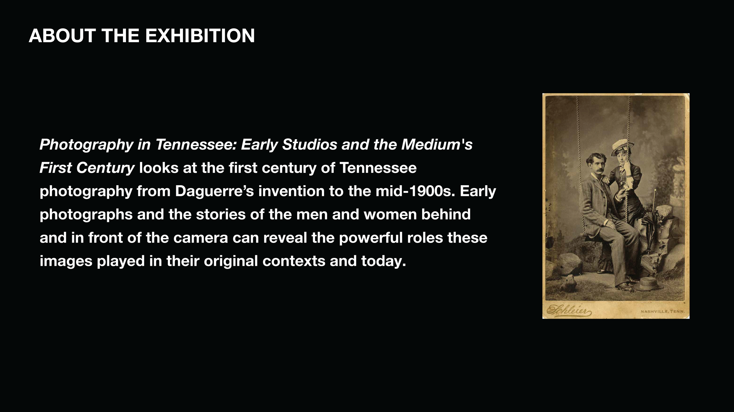 An in debt look at the exhibition design process behind the Photography in Tennessee: Early Studios and the Medium’s First Century Exhibition at the Tennessee State Museum.