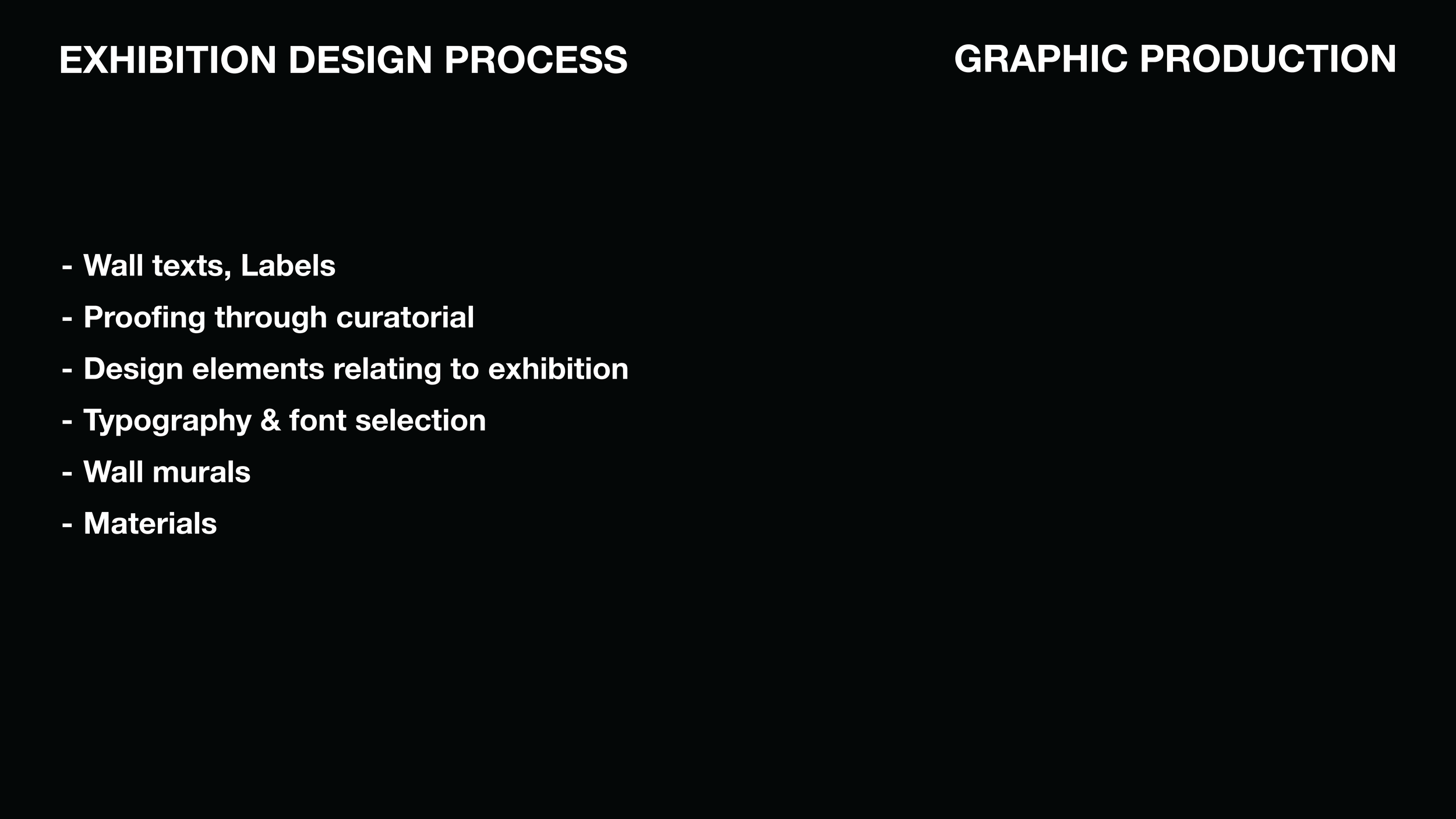 Marzuwq led the Exhibition design & Layout of the exhibition as well as the hands on installation. The work shown guides you through early layouts, renders, and process to final install shots.